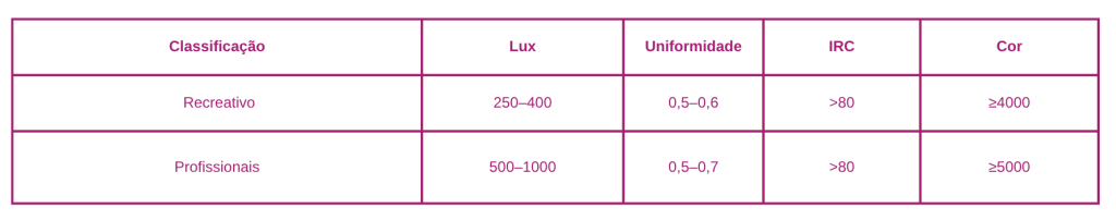 Níveis recomendados de iluminação para beach tennis